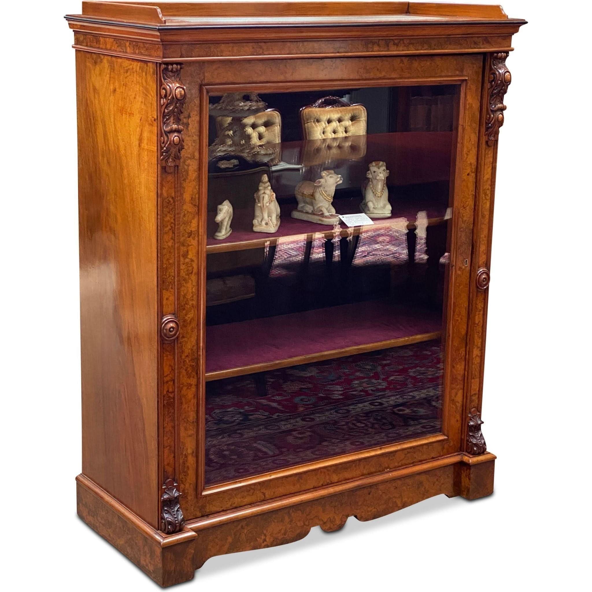 19th-Century English Burr Walnut Single Door Display Cabinet, c.1870