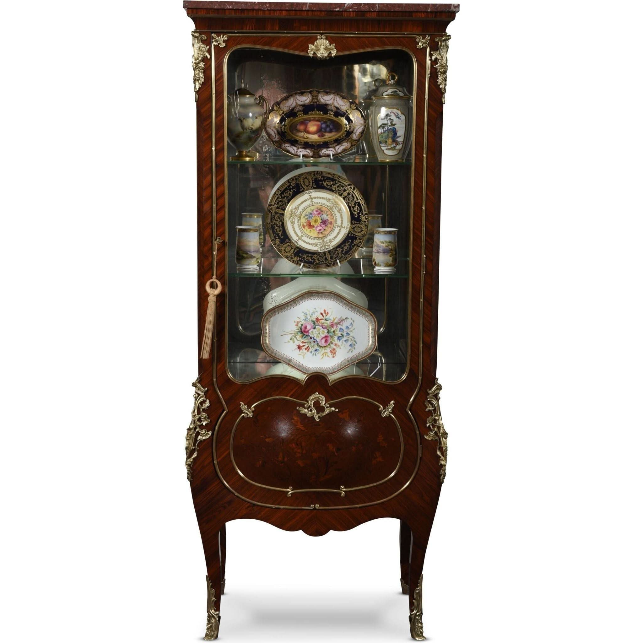 Superb 19th Century French Kingwood Vitrine, with Gilt Bronze Mounts, marquetry inlays. c.1870