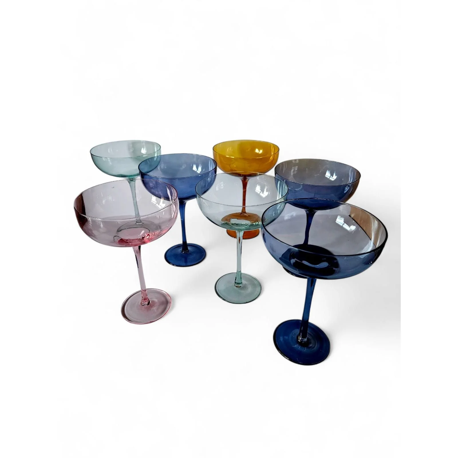 Elevate your party with this daring set of 7 Arlequin XXL cocktail glasses. Featuring towering stems and a bold design, each glass is in pristine condition free from any cracks or scratches. Make every drink an unforgettable statement.