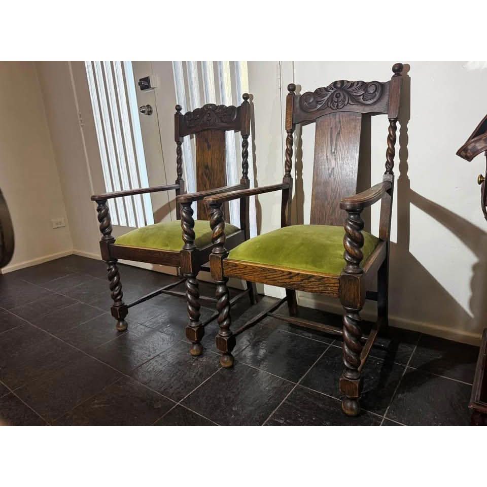 A pair of Antique solid timber chair excellent condition green velvet