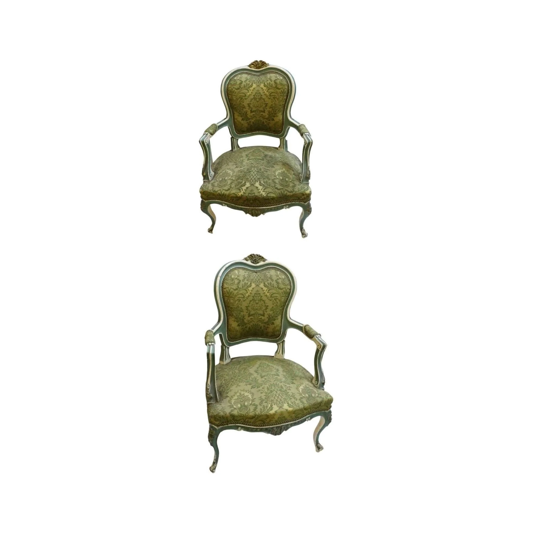 A pair of early French Louis XV style arm chairs