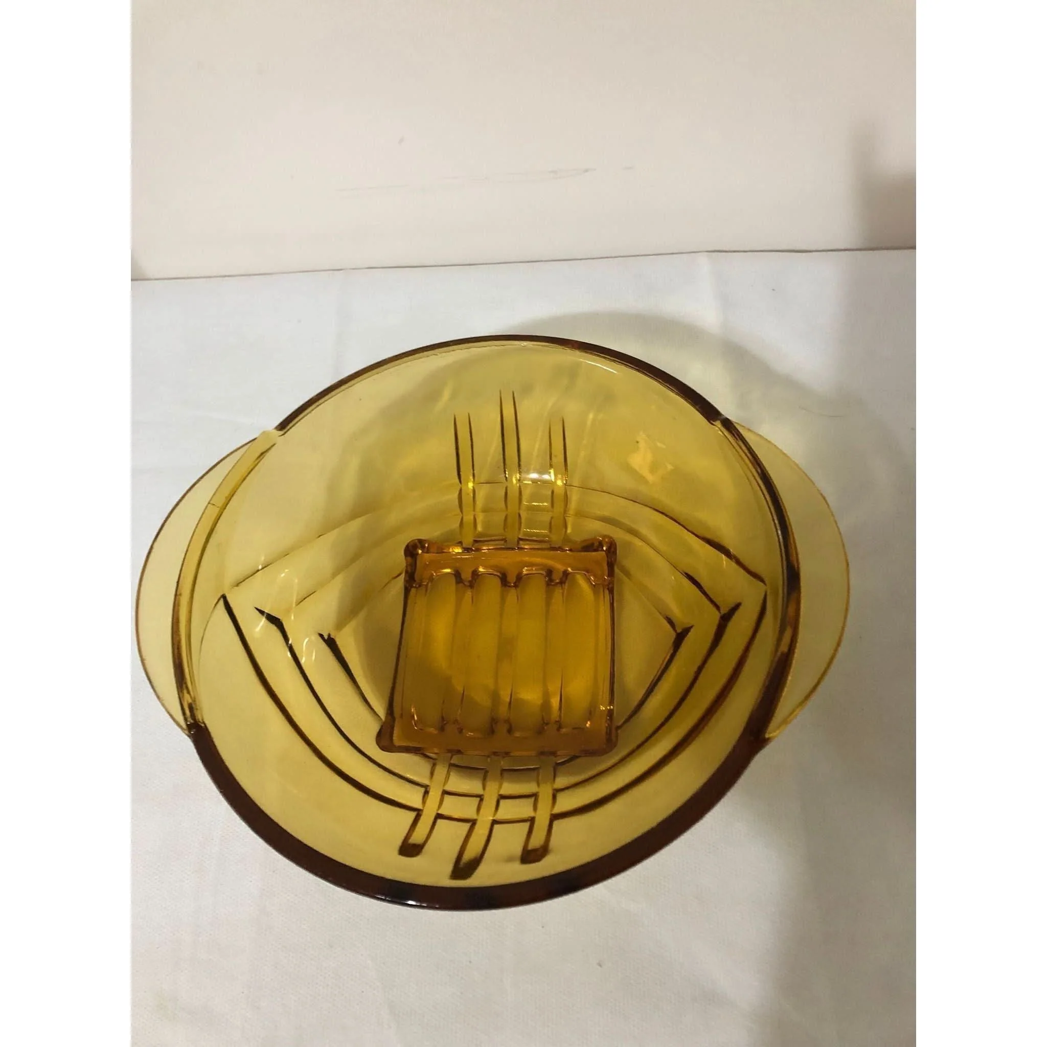 Amber Glass Bowl / Amber Depression Glass Dish / Art Deco style Amber Glass Bowl—