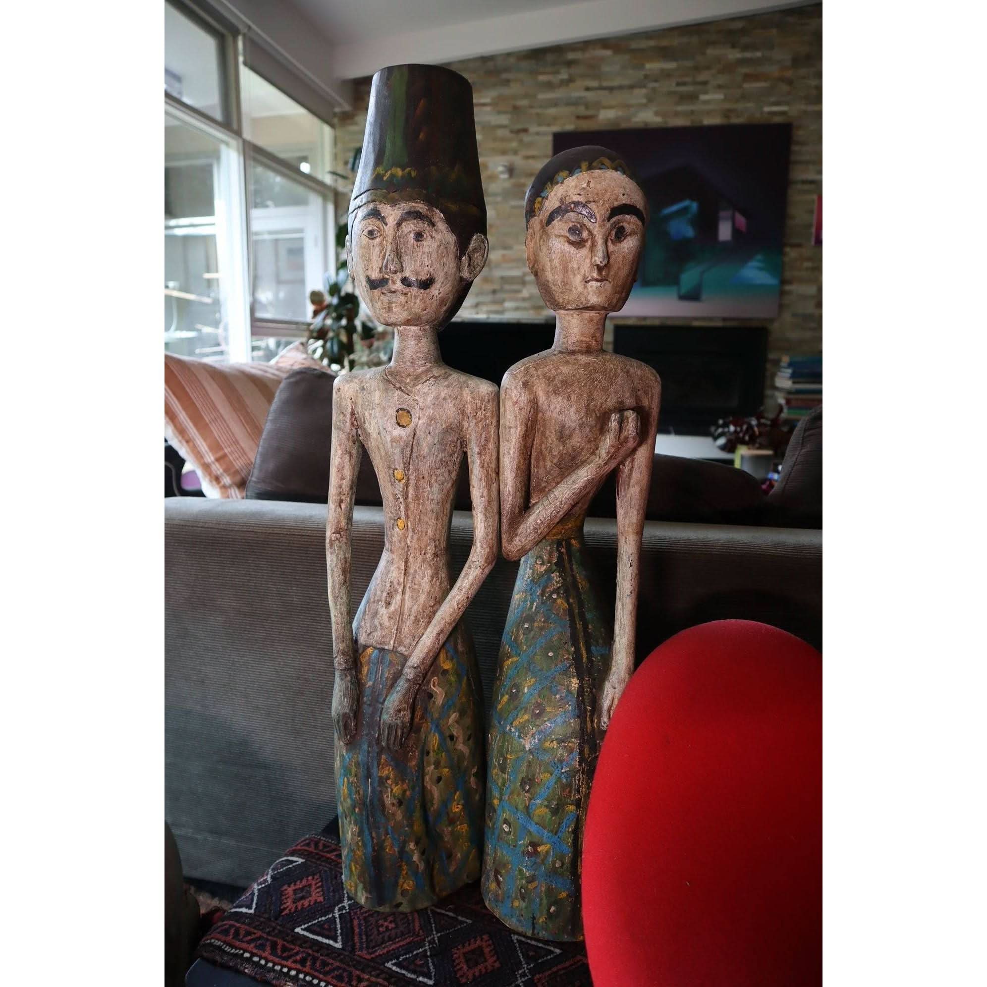 Loro Blonyo or the “inseparable couple’ are a carved wooden pair of central Javanese matrimonial figures that were historically revered and centrally placed within traditional Javanese homes. The figures hark back to pre-Islamic culture on Java and later were incorporated into the syncretic ritual practices of the Javanese.