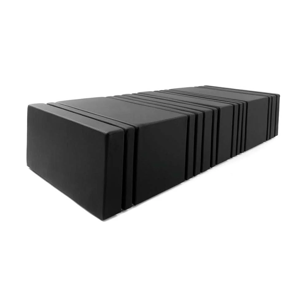 The Barcode ottoman , I designed for an exhibition and than entered in some furniture competitions. Winning 1 and second place in another. The segment are constructed using plywood , with high grade enduro foam, upholstered in elmo soft leather sitting on 20mm perspex base with the first LED lighting strips back in 2006 with a 12 volt battery that you charge like a mobile phone . At night the Barcode looks like it is sitting on a sheet of ice . The pieces look like nothing is holding thew up because of the bracket system I used . Designed for galleries , foyers or the right house. The ottoman splits into 2 for transport .
