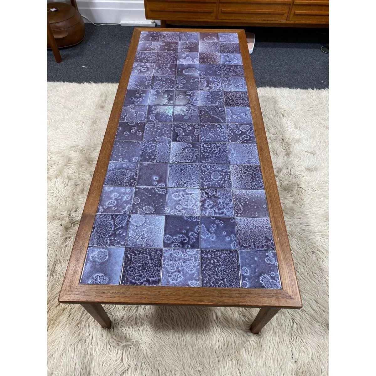 This is a Danish mid-century modern teak coffee table featuring Royal Copenhagen Baca tiles, likely designed by Severin Hansen for Haslev Møbelsnedkeri around the 1960s.