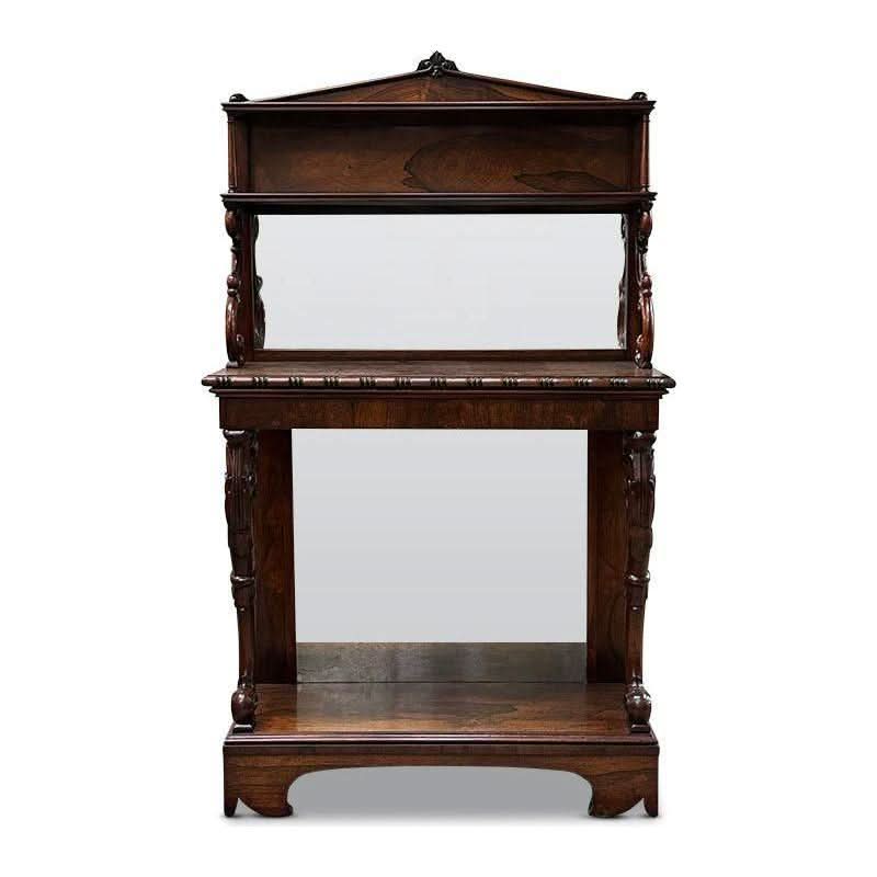 The rich, lustrous rosewood exudes an air of timeless luxury, creating a focal point that effortlessly captures attention. The console’s sleek surface offers a stylish platform for displaying treasured items or enhancing your everyday essentials. With its meticulously crafted cabriole legs, each curve and contour reflects the mastery of a bygone era, adding a sense of artistry to its practicality.