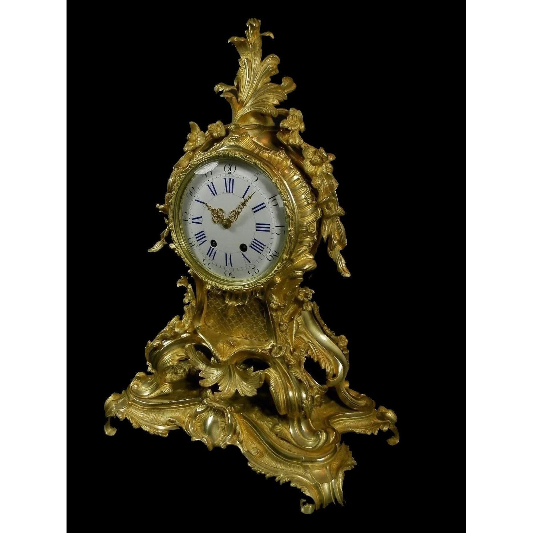 Large antique French rococo bronze clock - CL34