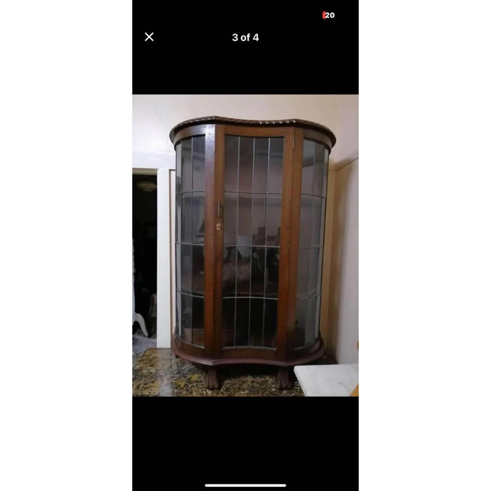 Large vintage kidney shape crystal display cabinet
