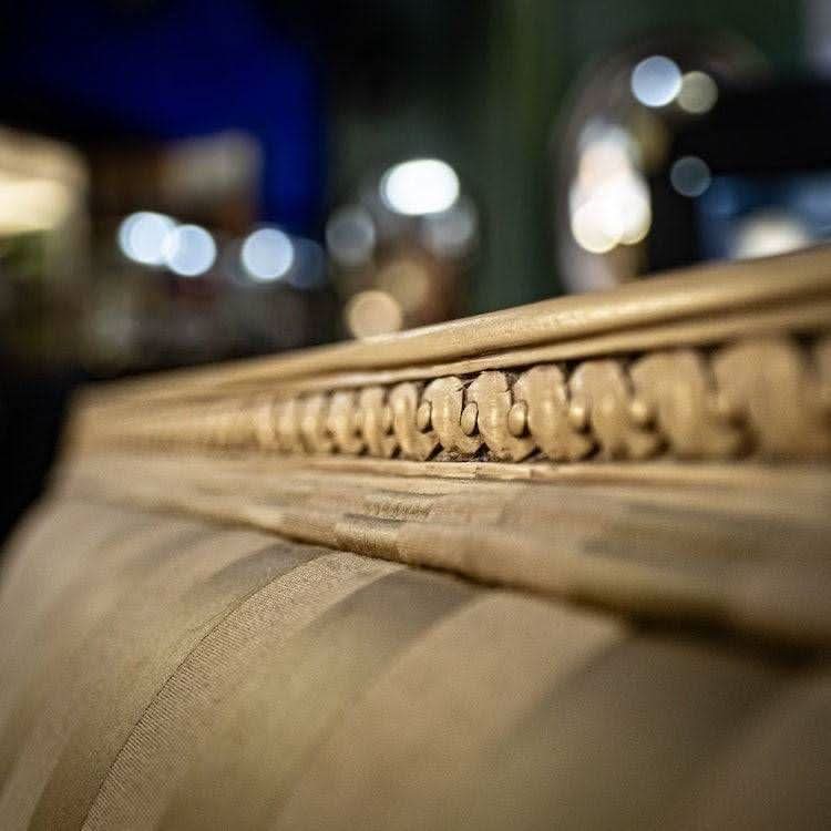 Lovely pair of chairs with carved timber frames and silk upholstered seats.