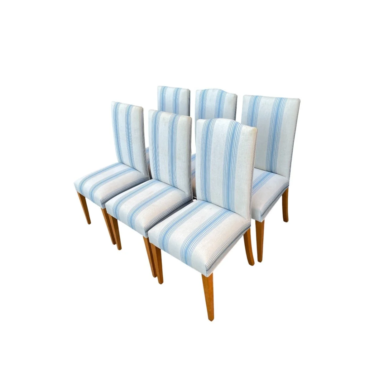Set of 6 Upholstered Dining Chairs with Blue and White Stripes—
