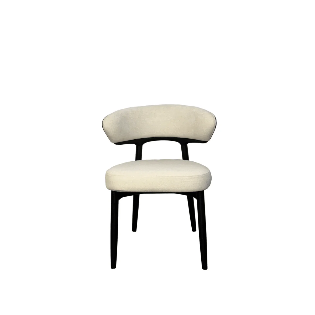 The seat and backrest are generously padded and covered in a high-quality textured fabric that is both tactile and durable. Its ergonomic "hug" design ensures long-lasting comfort, making it as functional as it is beautiful. Whether styled as a full dining set or used as a standalone statement piece, the Sophie Chair brings a touch of boutique hotel luxury to your home.