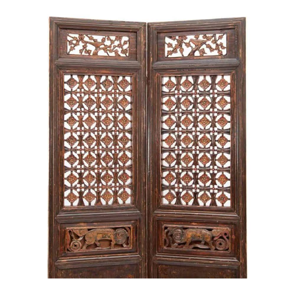 Fascinating screen with combination of relief and open carving with painted elements as well.
