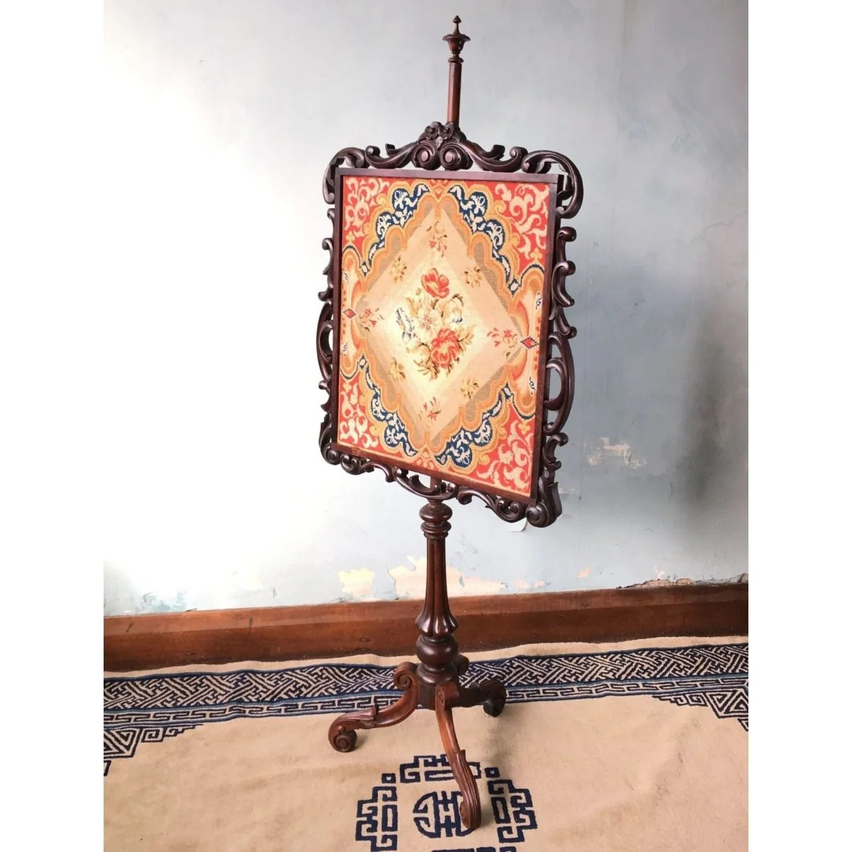 Victorian Mahogany pole screen, tripod base & tapestry, circa 1850
