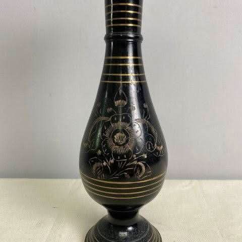 This stunning brass vase has a beautiful luxurious black and gold colouring that emphasises its elegant shape.