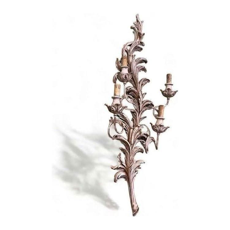-70%Vintage pair of Italian mid century c1960 carved wooden wall lights high quality—